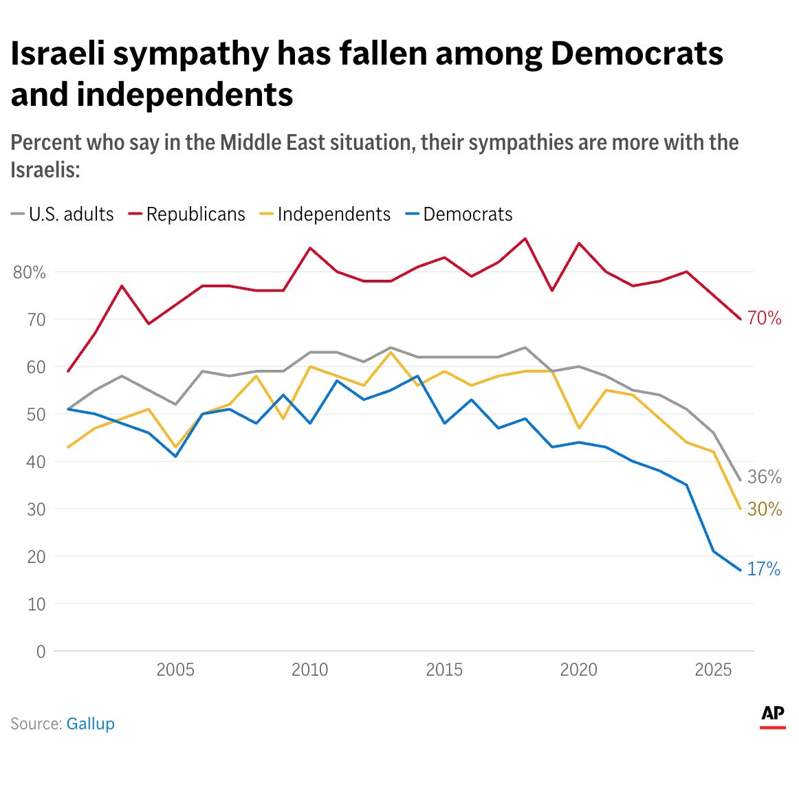 The AP headlined on February 27th, “Americans’ sympathies in the Israeli-Palestinian conflict have shifted dramatically, new poll shows”, and reported (better than Gallup did) on a new poll from Gallup. The AP’s report opened “American sympathies in the Middle East have shifted dramatically toward the Palestinians, according to new Gallup polling, after decades of overwhelming support for the Israelis.”